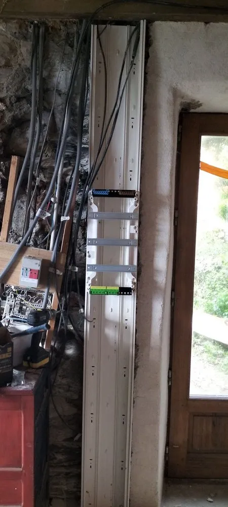 L’intégration du tableau dans une gaine technique de logement a nécessité une préparation précise du support mural. Dans une maison ancienne en pierre, l’alignement, la fixation et le passage des gaines doivent être soigneusement réalisés afin d’assurer solidité et accessibilité.