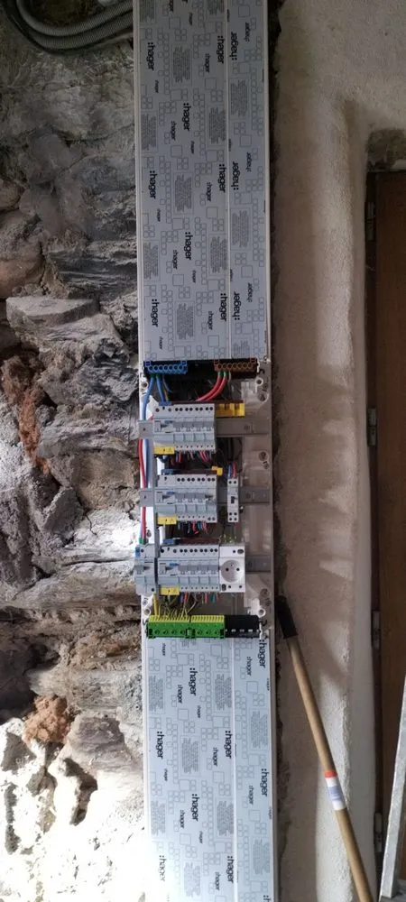 Pose d'un tableau intégré dans une gaine technique d'une maison en pierre à Saint-Yrieix-la-Perche : cette intervention a consisté à installer un nouveau tableau intégré dans une gaine technique de logement (GTL) au sein d’une maison en pierre de deux étages avec dépendances. Réalisée par Mandin Marius, cette mise aux normes permet de centraliser l’ensemble des circuits électriques dans un espace sécurisé et conforme à la réglementation en vigueur.